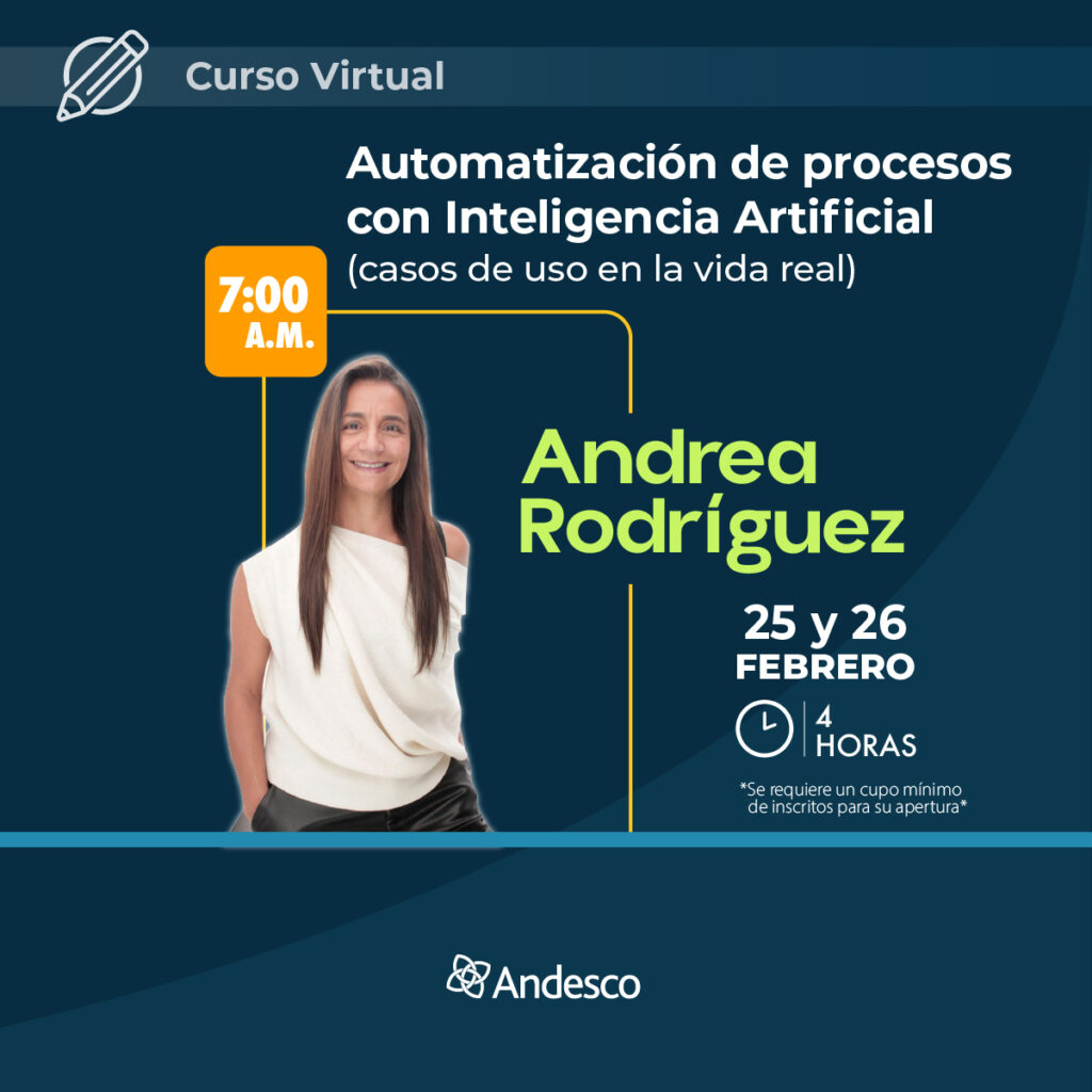 La inteligencia artificial ha dejado de ser una tecnología experimental para convertirse en un habilitador directo de eficiencia, control y rentabilidad en las organizaciones. En particular, los agentes de IA representan una nueva forma de automatización: sistemas inteligentes capaces de ejecutar procesos completos del negocio, tomar decisiones operativas y generar información accionable en tiempo real. Este curso ha sido diseñado para líderes empresariales y equipos estratégicos que necesitan entender, visualizar y comenzar a aplicar la inteligencia artificial y la automatización con agentes en sus compañías, sin requerir conocimientos técnicos avanzados.