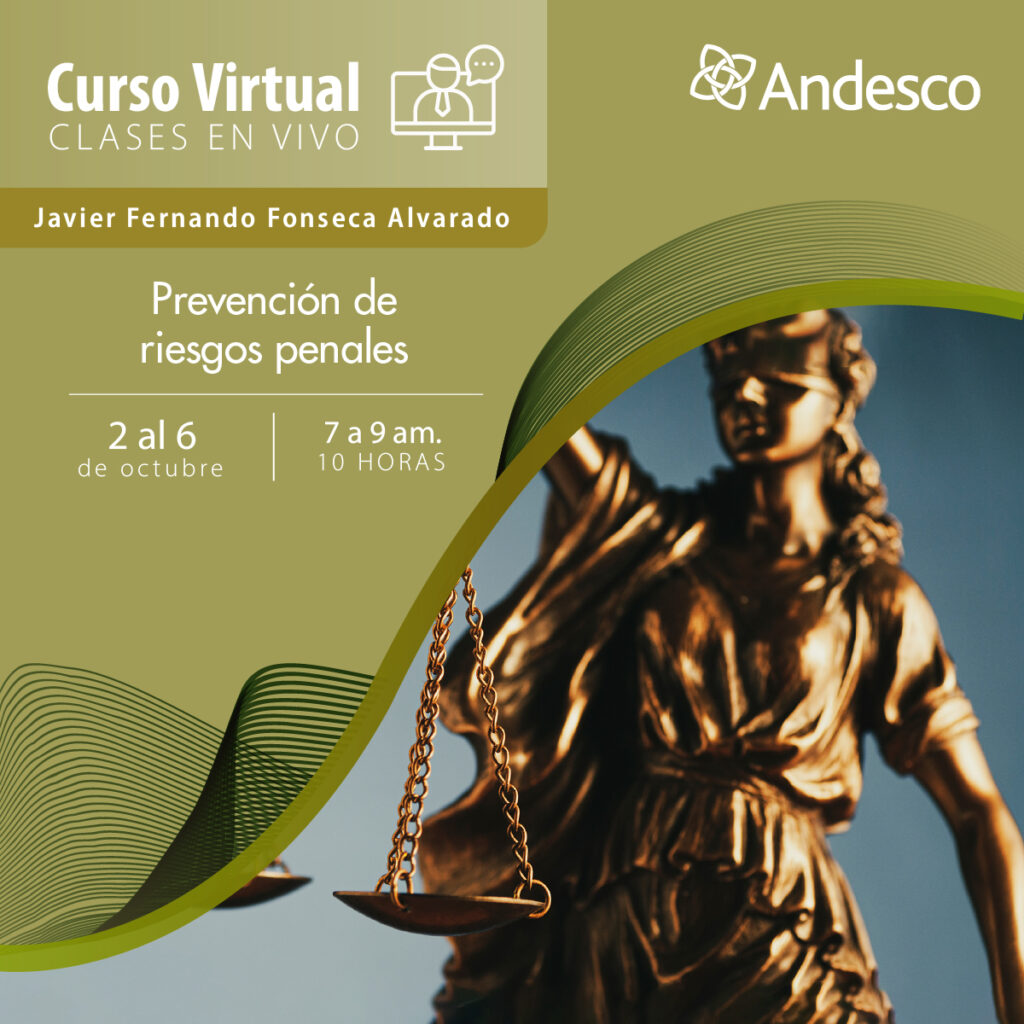 El curso en prevención de riesgos penales - ANDESCO 2023, pretende familiarizar a los participantes con las nociones básicas de la responsabilidad penal empresarial, explorando las fórmulas de imputación mediante las cuales, pueden eventualmente atribuirse delitos a sus representantes legales, miembros de juntas directivas y agentes de hecho o de derecho.