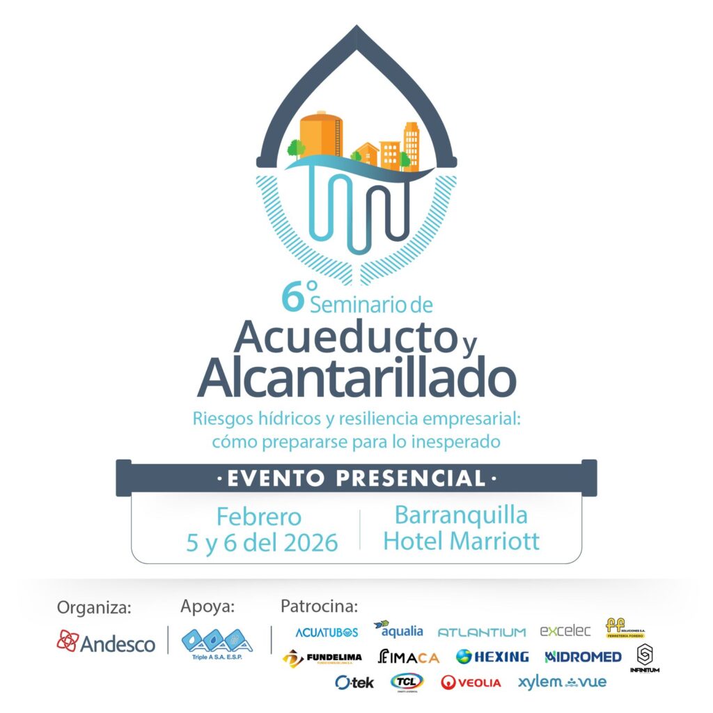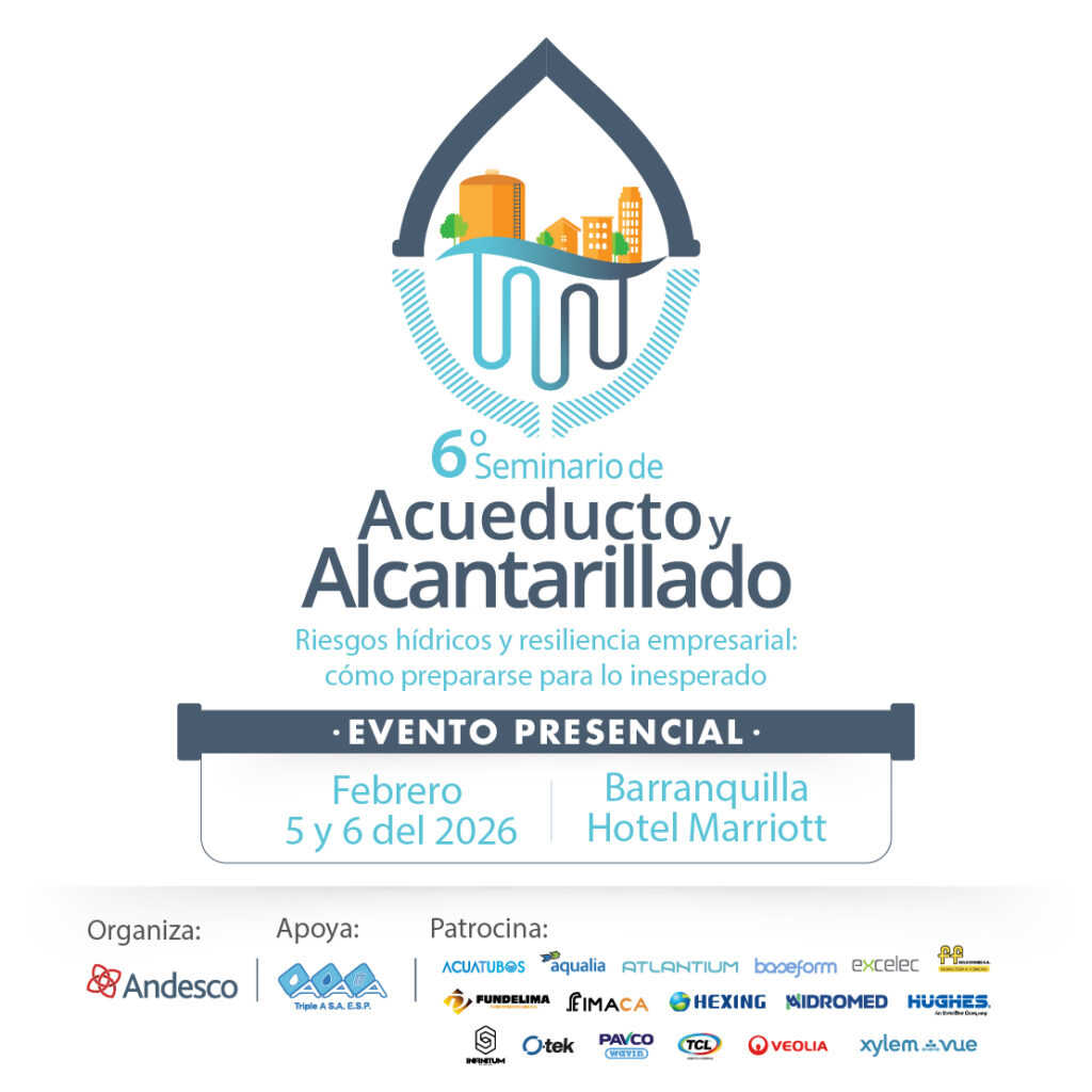 El cambio climático, la variabilidad hídrica y los nuevos desafíos regulatorios exigen que las empresas de acueducto y alcantarillado adopten un enfoque estratégico e integral frente a los riesgos. Las interrupciones del servicio, las presiones financieras y las vulnerabilidades tecnológicas han demostrado que la resiliencia empresarial depende no solo de la infraestructura física, sino también de la capacidad de anticipar y gestionar lo inesperado. En este contexto, el VI seminario de acueducto y alcantarillado Andesco “Riesgos Hídricos y Resiliencia Empresarial: Cómo Prepararse para lo Inesperado” se consolida como un espacio de encuentro entre directivos, autoridades y expertos nacionales e internacionales, orientado a fortalecer la visión gerencial frente a los retos del recurso hídrico. A través de conferencias, paneles y talleres prácticos, el evento busca promover la adopción de estrategias financieras, tecnológicas y organizacionales que garanticen la continuidad, sostenibilidad y competitividad de los servicios de agua y saneamiento. El VI Seminario tiene como propósito fortalecer las capacidades de liderazgo y toma de decisiones de los directivos y de los equipos estratégicos del sector, promoviendo una cultura de anticipación, innovación y sostenibilidad frente a los riesgos hídricos, financieros y tecnológicos. De nuevo la Puerta de Oro de Colombia, Barranquilla, nos acogerá como sede de este evento, una ciudad cuya infraestructura y oferta de experiencias hacen que quien la visite siempre se quiera quedar. Además, viviremos la alegría del Carnaval de Barranquilla Patrimonio Cultural e Inmaterial de la Humanidad, con su mágica noche de Guacherna. Este evento se realiza con el apoyo de Triple A S.A. ESP,